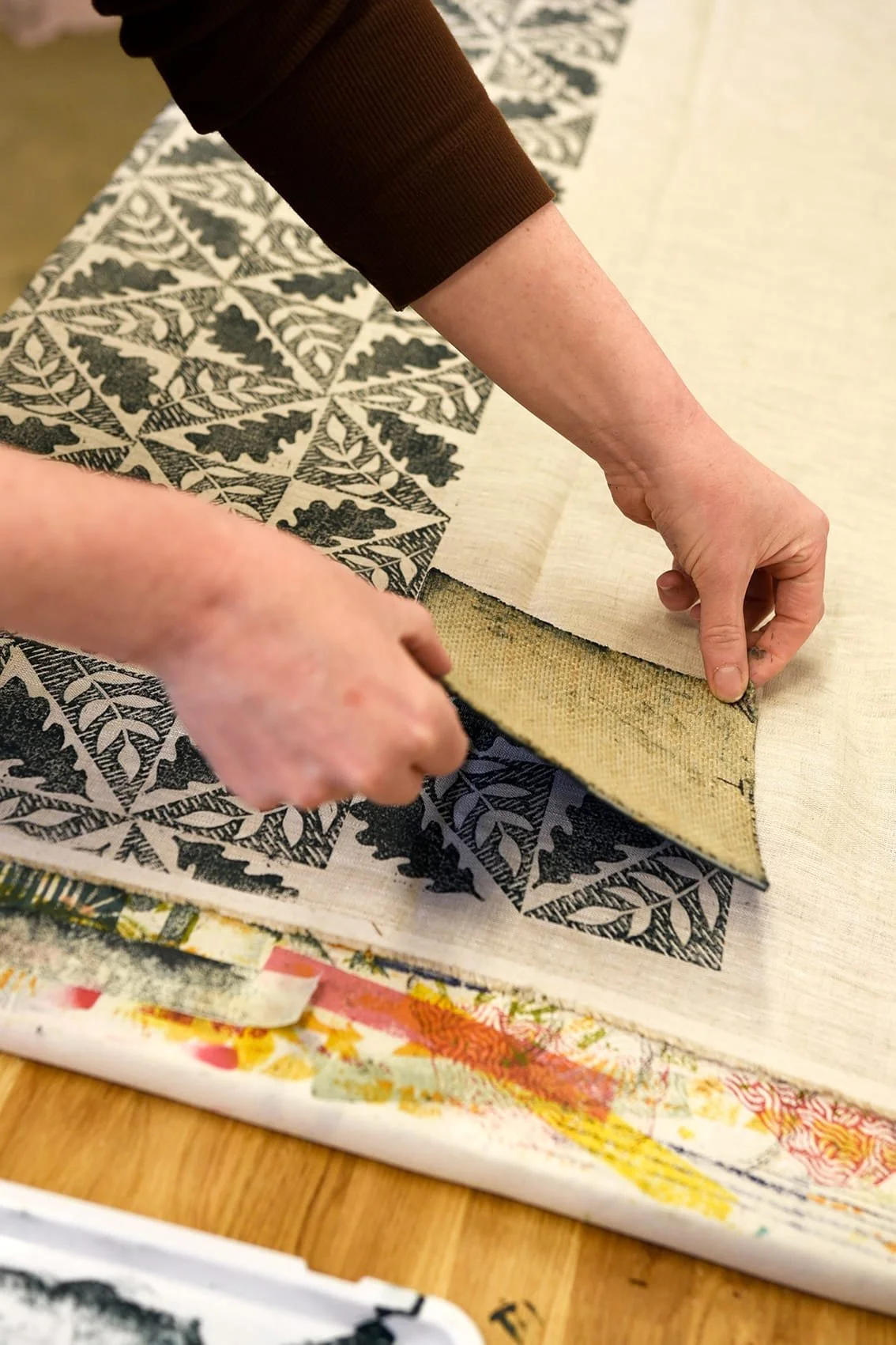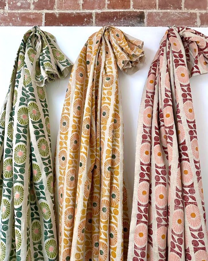 Aidan Liggins is a textile designer and printmaker specialising in traditional block printing techniques. Her work explores pattern, nature and the rhythm of slow handmade processes. Using natural fabrics, water-based inks and carved printing blocks, Aidan creates textiles and teaches workshops that introduce students to the tactile craft of block printing and repeat pattern design.